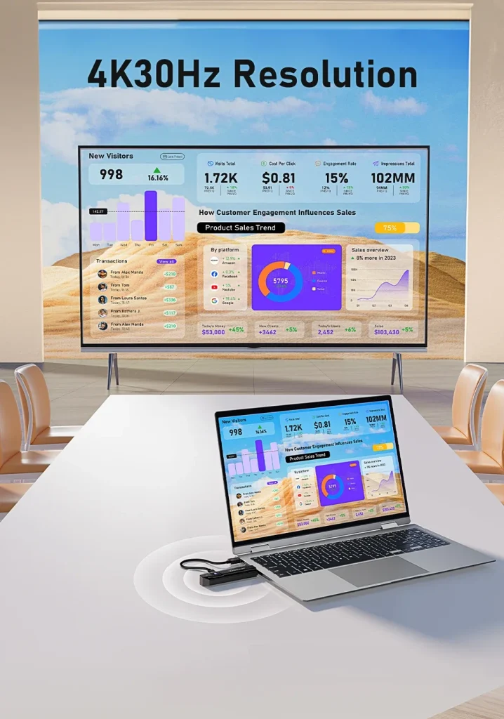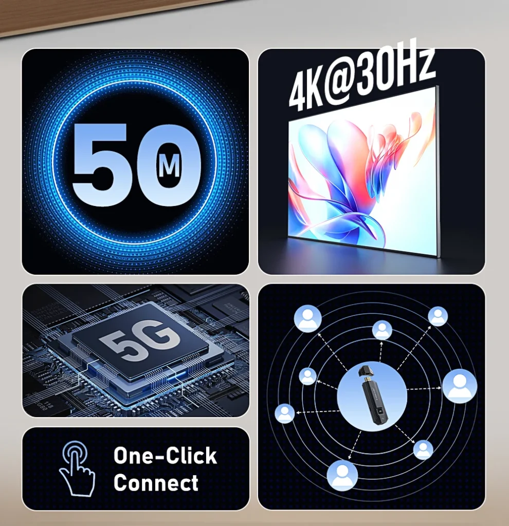 Ce kit Lemorele transforme l’expérience de partage, d’éducation et de divertissement vidéo sans fil, tout en éliminant l’encombrement des câbles HDMI classiques.